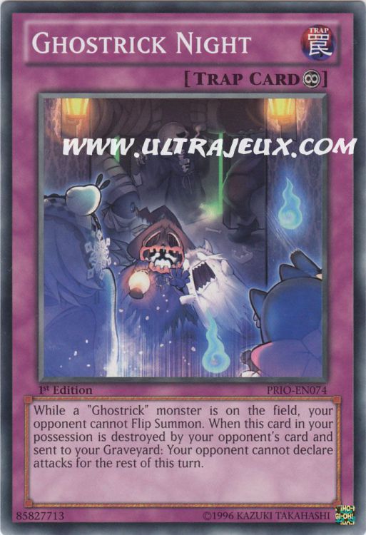 IndisponibleTant qu'il y a un monstre "Fantôruse" sur le Terrain, votre adversaire ne peut pas Invoquer par Flip. Lorsque cette carte en votre possession est détruite par une carte de votre adversaire et envoyée à votre Cimetière : le reste de ce tour, votre adversaire ne peut pas déclarer d'attaque.