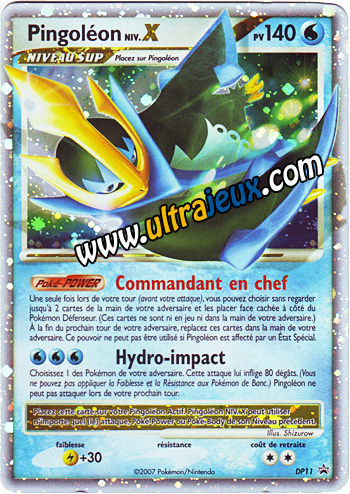 Avec 140 PV son attaque hydro-impact et un poké-POWER qui empêche l'adversaire de jouer ses cartes!! Pingoléon
