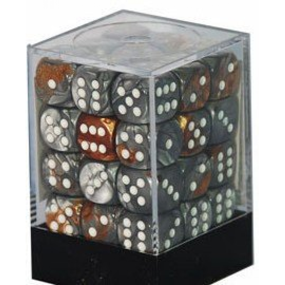 Chessex - Set de 36 Dés - À 6 Faces Couleur - GEMINI - Cuivre - Acier/Blanc - CHX26824