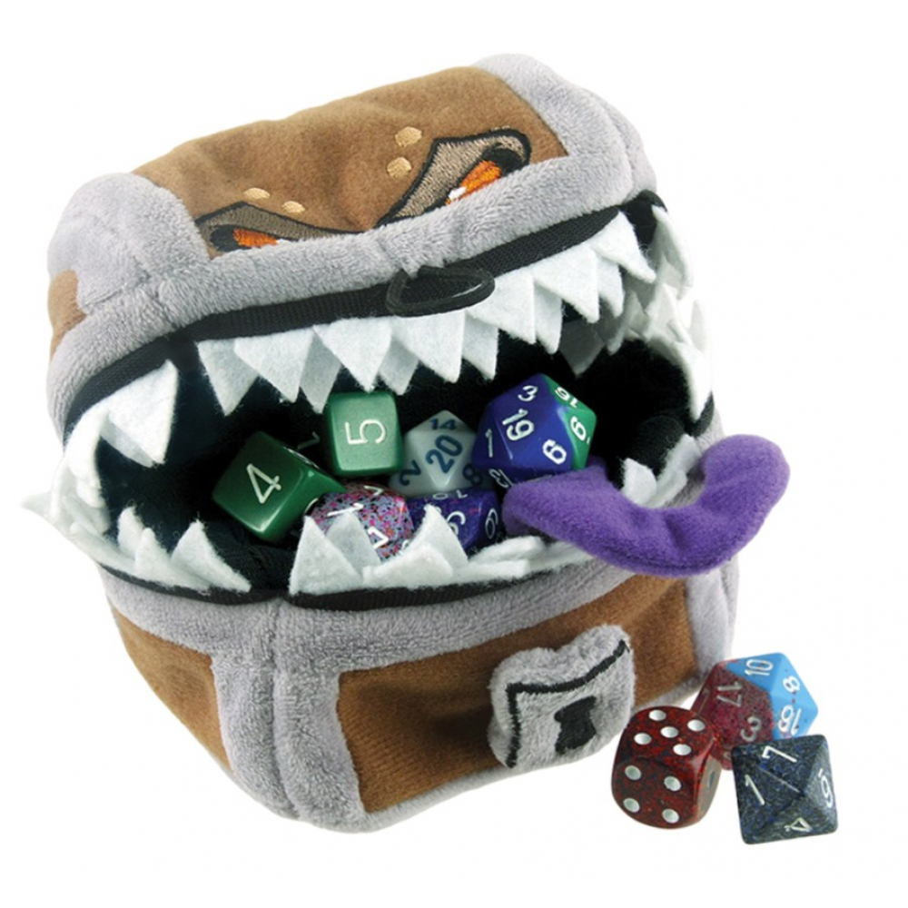Petit coffre mimic en peluche pour dés.
