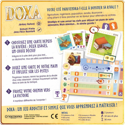 Dans Doxa (qui signifie « Gloire » en grec ancien) vous prenez les rênes d’une cité-État antique et façonnez son destin en influant sur ses piliers fondamentaux : agriculture, ingénierie, population, armée et économie.